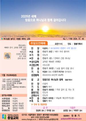제목 : 2025년 1월 5일 주일 주보